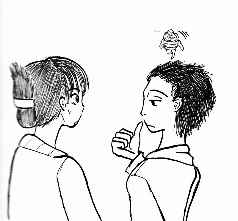 と言った後で女の子が「うわハモった 最悪や」と言うシーン。(↑上図みたいなん。超うろ覚え)
