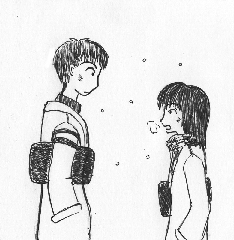 他愛ない感じの会話中に雪が降ってきて、2人同時に「あ、雪」